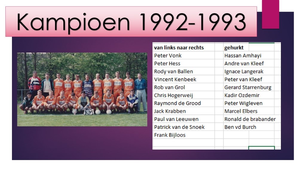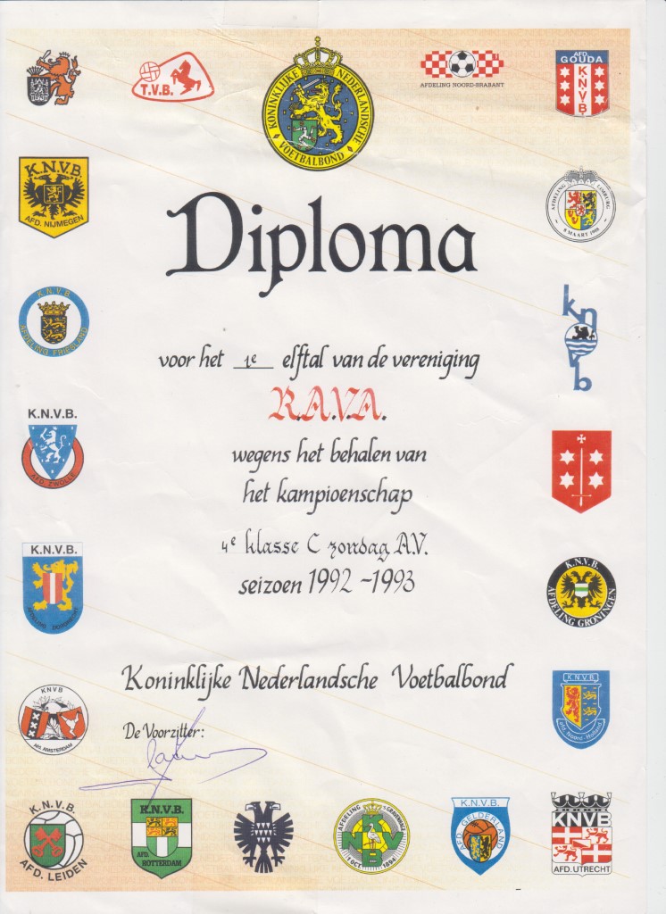 RAVA 1 kampioen 1992-1993 o.l.v. Frank B...
